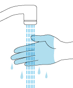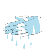 4.片手をぬるま湯で濡らします。 ※その水分を両手に広げてください。 |