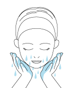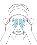 5.濡らした手の平で肌をこすらず、円を描くように 優しく馴染ませ乳化させます。 ※4から5を3回程くりかえします。 |